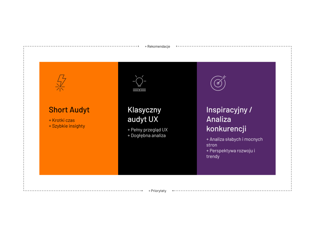 Zoptymalizuj stronę dzięki kompleksowym audytom i naszym rekomendacjom! Oferujemy audyty użyteczności, analizę konkurencji i inspiracji, dostosowane do wymagań Twojego biznesu. Łączymy te analizy z konsultingiem technologicznym i biznesowym, elastycznie dopasowując ofertę do potrzeb klienta.