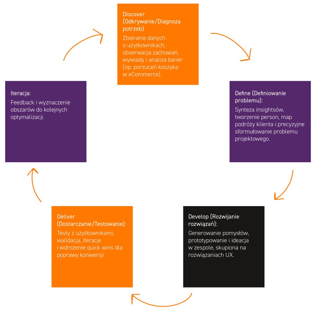 Wiemy, że intuicyjna ścieżka użytkownika powstaje dzięki współpracy interesariuszy biznesowych, optymalnemu wykorzystaniu możliwości technologicznych oraz eksperckiej wiedzy z analiz i badań.